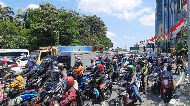 "Kecewa banget, fungsinya apa ga boleh lewat sini, kan buat akses pulang ke rumah ga kemana-mana Merugikan banget. Sudah satu jam kena macet, berhenti total, jalan ya sitik-sitik," ujarnya.