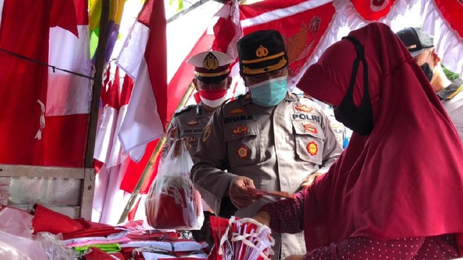 Sementara Haryadi, salah satu pedagang bendera mengaku berterima kasih kepada polisi yang sudah memborong dagangan bendera miliknya. Dirinya mengaku di tengah pandemi ini, minat masyarakat membeli bendera sangat minim.