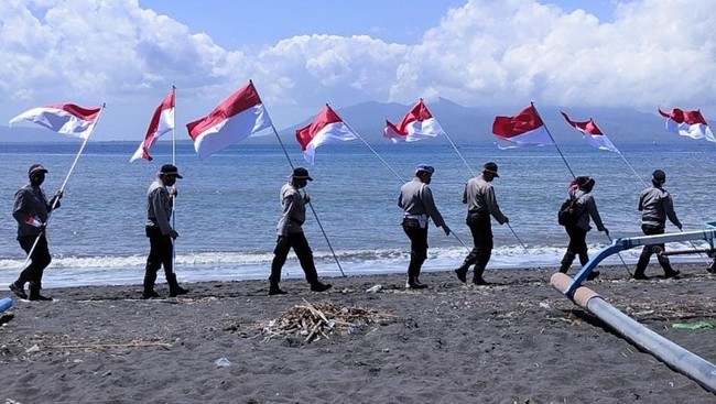 "Ini kita berbagi 76.000 Bendera Merah Putih untuk Indonesia Tangguh,Indonesia Maju. Bhabinkamtibmas membagikan kepada masyarakat, kelompok hingga turun ke jalan," ujar Nasrun kepada wartawan.