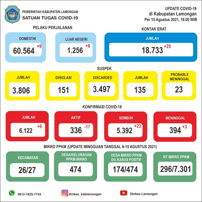Kasus aktif COVID-19 di Lamongan juga mulai membaik. Saat ini berada di angka 5,49 persen dengan jumlah kasus aktif yang terus menurun. "Semoga keadaan terus membaik," ujarnya.