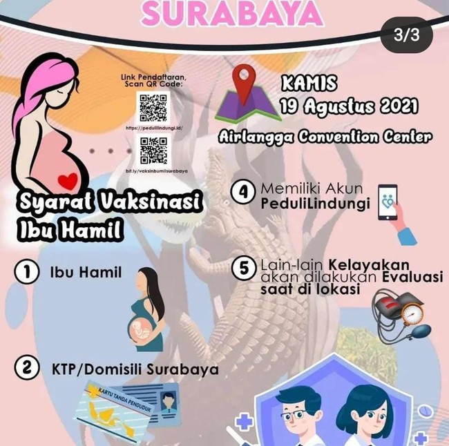 Bagi Anda, ibu hamil yang ingin mengikuti vaksinasi COVID-19 esok hari segera daftarkan diri melalui tautan bit.ly/vaksinbumilsurabaya atau https://pedulilindugi.id/