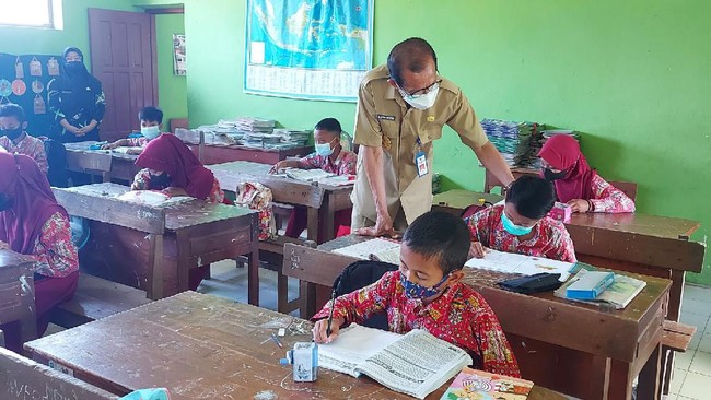 "Jadi bergantian belajarnya, dibatasi 50 persen dari jumlah murid di kelas. Kita mulai sudah Rabu kemarin," kata Kang Woto.