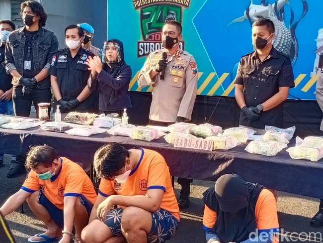 "Untuk jumlah barang bukti yang telah kita sita, yang telah kita amankan, dari masing-masing tersangka, total sebanyak 13.394,78 gram," kata Kapolrestabes Surabaya Kombes Akhmad Yusep Gunawan kepada wartawan saat rilis, Selasa (24/8/2021).