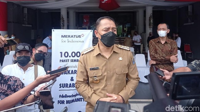 "Memang ga terbiasa pakai masker, tapi itu satu-satunya penularan yang bisa kita batasi secara maksimal. Ketiga, kecepatan vaksin kita lakukan. Keempat, kalau sakit langsung cepat dipindah jangan di rumah. Inilah yang selalu saya katakan, siapa yang bisa melakukan ini, ya warga Surabaya dewe, pindah ke tempat isolasi agar tidak menulari anak, keluarga dan tetangga. Dari hatinya warga masing-masing," pungkas Eri.