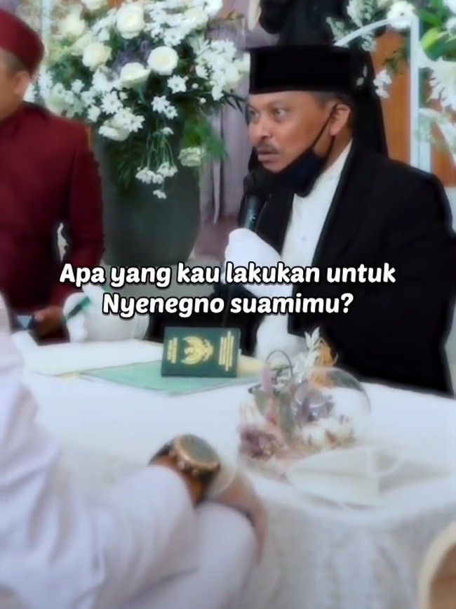 Dalam satu video berdurasi 54 detik, sang penghulu bertanya kepada pengantin perempuan "Apa yang kau lakukan untuk nyenengno suamimu?"