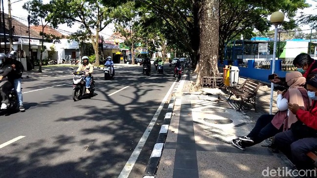 Perekam diduga seorang perempuan yang sedang duduk di kursi trotoar. Si perekam juga merekam jelas nopol motor N 5587 AAV yang dikendarai pria tersebut.