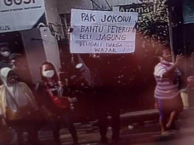 Pria tersebut sebelumnya terlihat membawa selembar poster bertuliskan 'Pak Jokowi bantu peternak beli jagung dengan harga wajar'. Pria tersebut membentangkan poster itu sambil berdiri di pinggir jalan saat mobil Jokowi melaju.