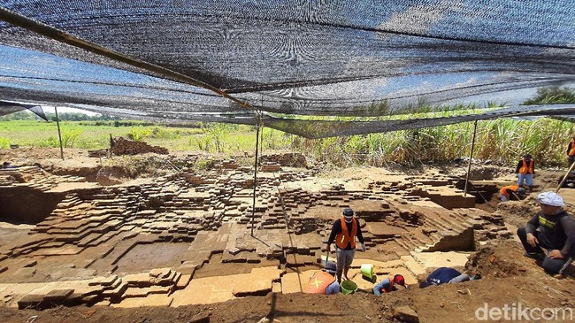 "Di hari kedelapan ini kami sudah menampakkan bentangan sudut barat laut berlanjut ke arah selatan, di bagian tengah ada gerbang. Di antara gerbang ada dinding yang membentang dari utara ke selatan. Sebenarnya gerbang sudah kami temukan tahun 2020, tahun ini kami perjelas," kata Ketua Tim Ekskavasi Situs Kumitir dari Balai Pelestarian Cagar Budaya (BPCB) Jatim Wicaksono Dwi Nugroho kepada detikcom di lokasi, Selasa (14/9/2021).