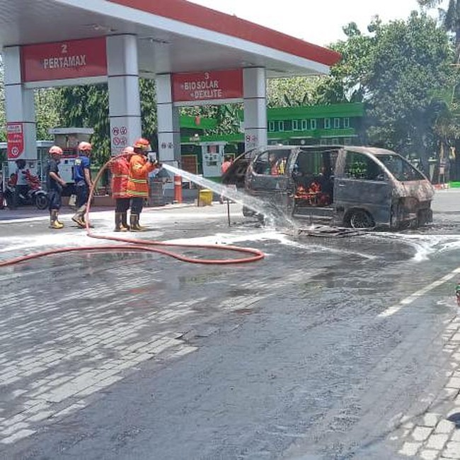 "Jadi sekitar pukul 12.00 WIB suami istri tersebut baru selesai mengisi BBM jenis pertalite. Saat akan menyalakan kendaraan itu tidak bisa dan petugas SPBU melihat percikan apik dari bagian aki. Spontan petugas SPBU mengabari suami istri dan keluar menyelamatkan diri," kata Laksono.