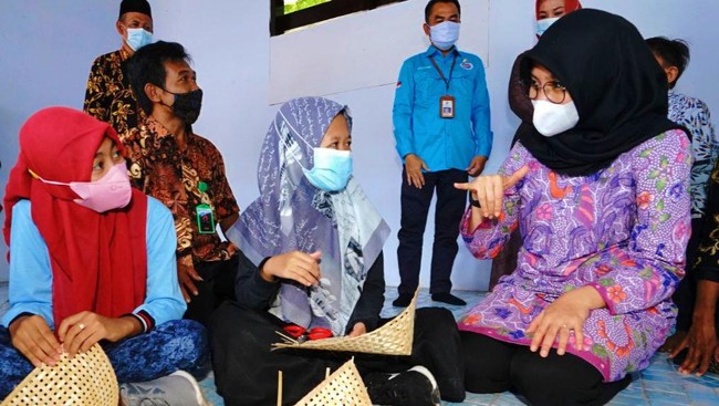 Ipuk hadir bersama Anggota DPRD Provinsi Jatim, Zeiniye; Kabid Pelayanan Dan Rehabilitasi Sosial Dinas Sosial Jatim, Sugiyono; dan Plt Kepala Dinas Sosial Pemberdayaan Perempuan dan Keluarga Berencana (Dinsos PPKB) Banyuwangi, Henik Setyorini.