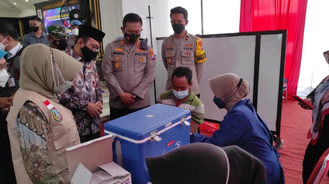 "Mereka salah satu yang terdampak pandemi COVID-19. Oleh sebab itu, kami beri bantuan sekaligus kami perhatikan kesehatannya. Setelah kami vaksin kami beri bantuan untuk meringankan beban mereka," kata Kapolres Jombang AKBP Agung Setyo Nugroho kepada wartawan di lokasi, Kamis (23/9/2021).
