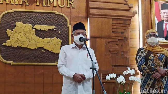 "Hari ini saya berkunjung ke Jawa Timur bertemu dengan ibu gubernur dan lima bupati dalam rangka kegiatan pengentasan kemiskinan ekstrem," kata Ma'ruf usai rakor di Gedung Negara Grahadi Jalan Gubernur Suryo Surabaya, Kamis (30/9/2021).