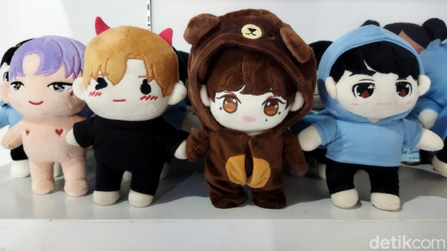 Tokoh K-Pop tersebut dibuat dalam bentuk kartun, kemudian dijadikan boneka. Beragam tokoh mulai dari EXO, BTS hingga Jungkook tampak lucu dan menggemaskan.