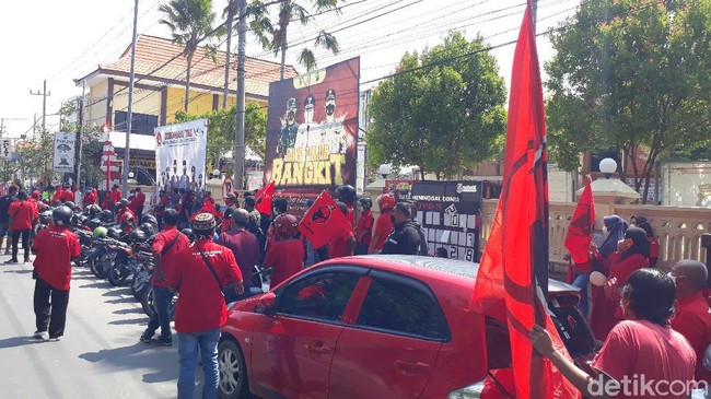 Sekitar 100 kader PDI Perjuangan Bojonegoro turun jalan dan melakukan konvoi menuju ke Polres Bojonegoro di Jalan MH. Tamrin. Mereka melakukan konvoi dan aksi sambil mengibarkan bendera partai.
