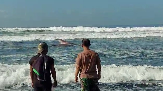 "Sekitar 2 jam ikan tersebut berada di tepi pantai namun akhirnya berhasil kembali ke laut, sehingga tidak sampai mati di tepi pantai," tandasnya.