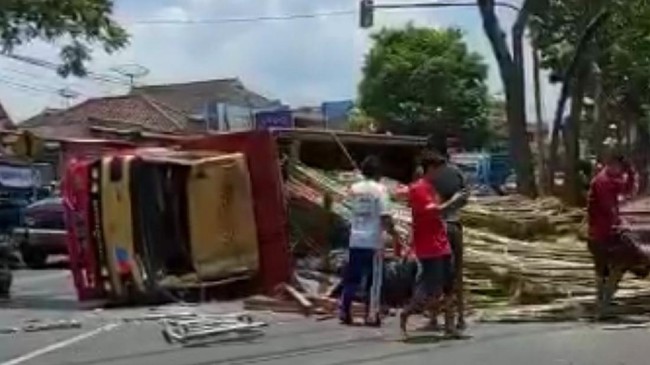"Akibat kecelakaan tersebut satu pengendara sepeda motor meninggal dunia di lokasi kejadian. Korban tertimpa truk yang terguling," kata Diyon, Minggu (10/10/2021).