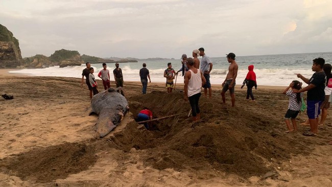 "Kami putuskan segera menguburkan karena sudah mulai menebar bau tak sedap. Gak jauh menguburmu, ya kami gali pasir di dekat bangkai, lalu kami kuburkan di situ juga," pungkasnya.