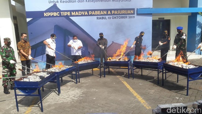 Pemusnahan dilakukan di depan Kantor Bea Cukai Pasuruan, Desa Raci, Kecamatan Bangil, Kabupaten Pasuruan. Barang bukti dibakar bersamaan.