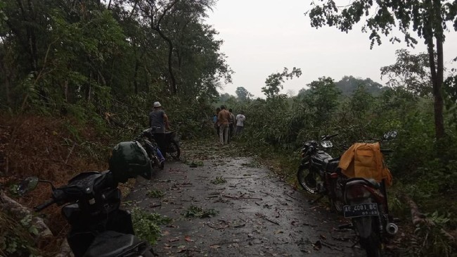 "Iya, akses jalan menuju kota putus. Sebab puluhan pohon tumbang," kata Suwaji, salah satu warga saat dikonfirmasi detikcom, Minggu (17/10/2021).