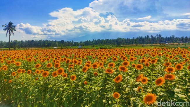 Spot selfie dan Instagramable muncul lagi di Banyuwangi. Kali ini, puluhan hektar tanaman bunga matahari yang sedang mekar-mekarnya di Desa Sumberkencono, Kecamatan Wongsorejo, menjadi serbuan netizen pencari spot Instagramable di Banyuwangi. Kata netizen, spot ini mirip dengan kebun tanaman bunga matahari di drama Korea?