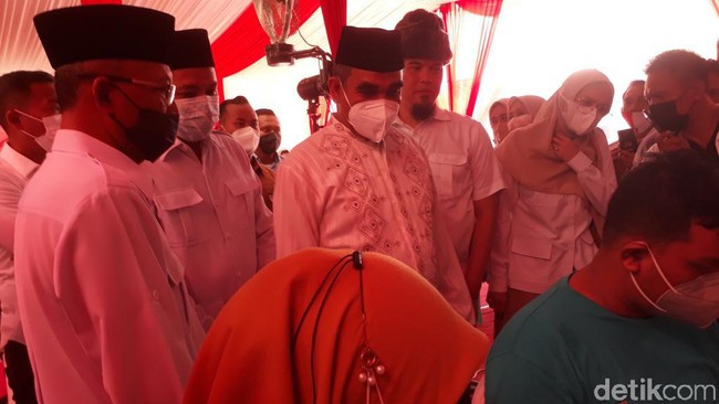 Muzani bersama rombongan yang tiba di lokasi siang hari langsung meninjau tenda vaksinasi. Muzani menyempatkan berdialog dengan para vaksinator, panitia dan warga. Ia memberikan semangat dan menanyakan hal-hal detil seperti jumlah dosis, warga yang ikut vaksin hingga kondisi kesehatan warga yang hendak disuntik.