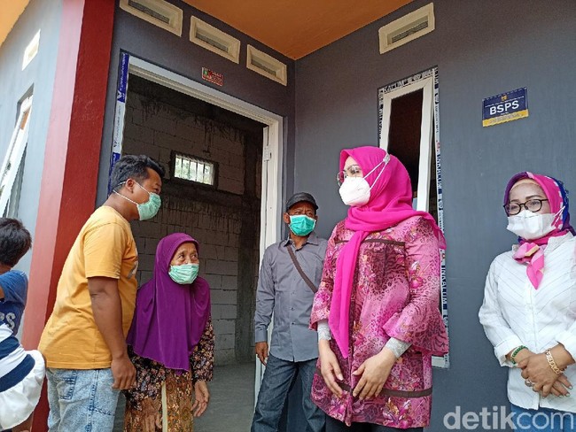 Yuni kemudian meninjau secara langsung salah satu rumah yang sudah selesai dibangun di Desa Ngrandu, Kecamatan Kauman. Rumah yang awalnya berdinding bambu pun disulap menjadi bangunan permanen.