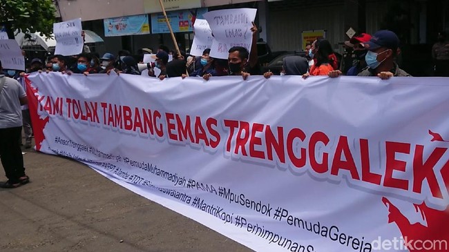 Koordinator aksi, Trigus Dodik Susilo mengatakan, mereka secara tegas menolak tambang emas di Trenggalek. Karena, dikhawatirkan akan merusak alam dan ekonomi masyarakat. Bahkan menurutnya, dari kajian yang dilakukan, tambang emas Trenggalek mengancam keberadaan hutan lindung.