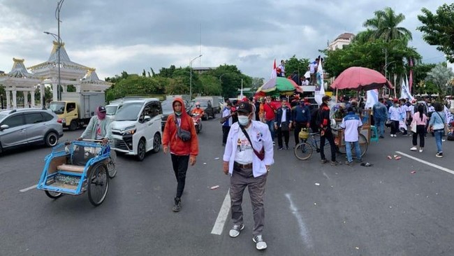 Sementara itu pukul 14.00 WIB, ratusan massa mulai membubarkan diri dengan tertib. Bahkan tampak mobil vaksinasi berada di lokasi menyediakan peserta aksi usai menyampaikan aspirasinya.