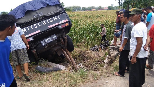 Sudaroini menambahkan akibat kejadian ini, pengendara sepeda motor mengalami luka - luka. Sedangkan yang dibonceng tewas usai terlindas pikap.