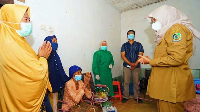 Ipuk juga melihat langsung vaksinasi di rumah Sumaiyah dan Siti, yang rumahnya tak jauh dari rumah Mbah Soreh. Selain memantau vaksinasi, Ipuk juga menyerahkan bantuan sembako pada mereka.