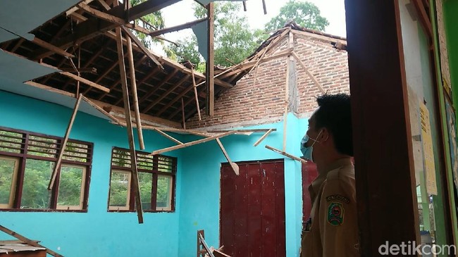 "Hanya kelas 3 saja. Satu gedung itu ada lima kelas, yang roboh hanya kelas 3," kata Suparman, Selasa (2/11/2021).