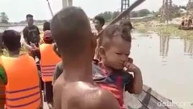 Saat diselamatkan sejumlah warga, Hafit tampak bingung. Beberapa kali dia celingukan mencari kedua orang tuanya. Hafit pun menangis di gendongan seorang pria warga sekitar yang menyelamatkannya.