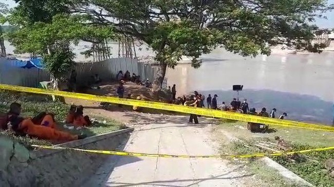Dari pantauan detikcom, garis polisi dipasang di sekitar lokasi. Itu dilakukan agar warga tidak berjubel di lokasi dan memudahkan petugas melakukan koordinasi. Sementara keluarga korban perahu tambang tenggelam yang belum ditemukan tampak berkumpul dan duduk di sekitar lokasi.
