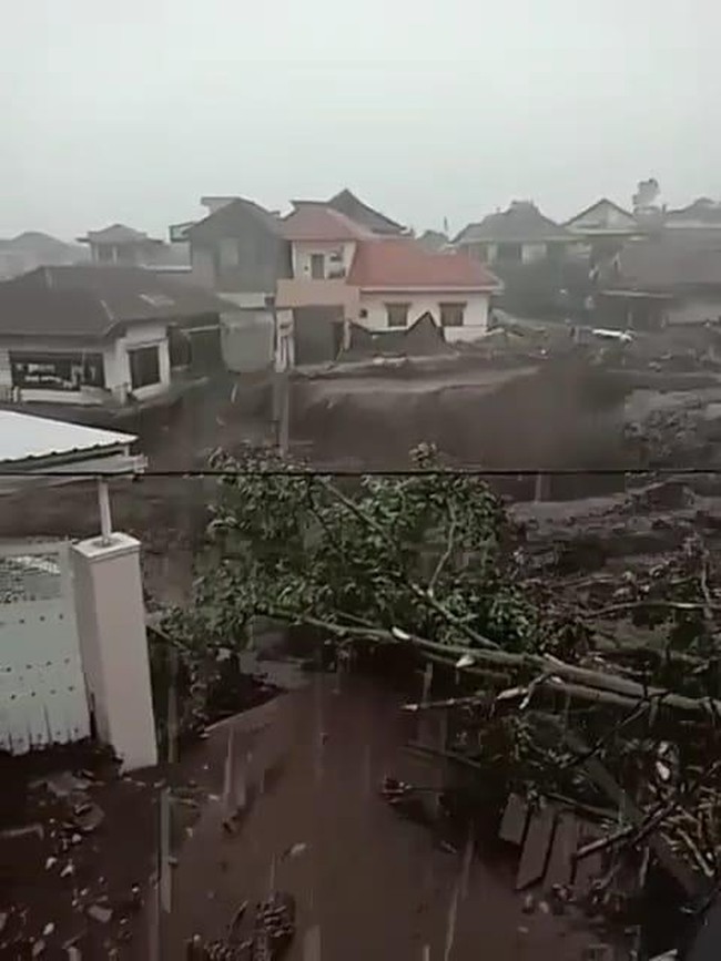 Dari video yang beredar, banjir menerjang jalanan hingga rumah penduduk. Tak hanya itu, volume air juga cukup deras hingga menutupi jalanan.