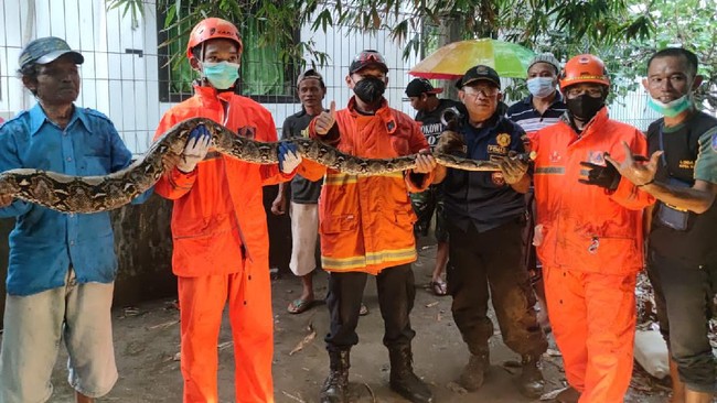 "Namun alhamdulillah petugas kami telah berhasil mengevakuasi ular dengan panjang sekitar 4 meter tersebut, Mas," jelas Indun.