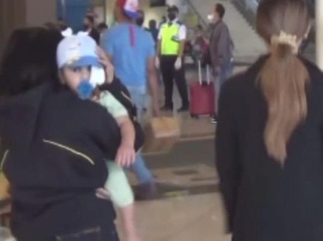 Dari pantauan detikcom saat di Bandara Juanda pukul 04.30 WIB, Gala digendong oleh adik kandung Bibi, Fujianti Utami. Dengan memakai topi, tampak bagian mata kiri Gala ditutup perban meski tangan Fuji menutup bagian mata Gala.