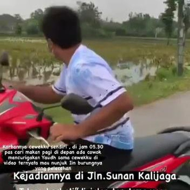 Awalnya, pelaku duduk di atas motor matic warna merah dengan pelat nomor S, sambil pamer alat kelamin kepada pengendara perempuan yang melintas. Sadar aksinya direkam oleh korban, pria itu tampak ketakutan. Pelaku lalu kabur sambil tangan kirinya berusaha menutupi alat kelaminnya.