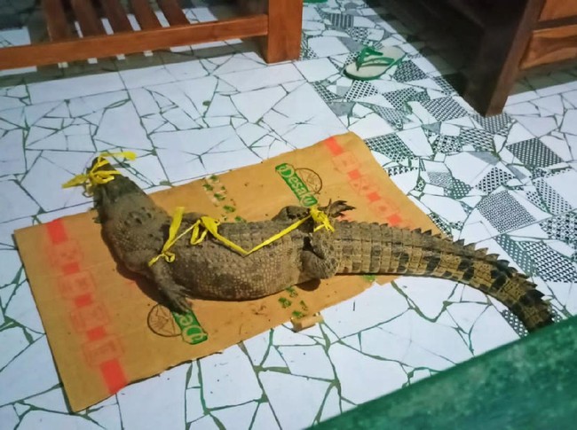 "Setelah itu saya hubungi BKSDA. Kemudian tadi malam langsung meluncur ke Koramil dan tiba sekitar pukul 01.00 WIB, dini hari. Saat itu buaya itu langsung kita serahkan," bebernya.