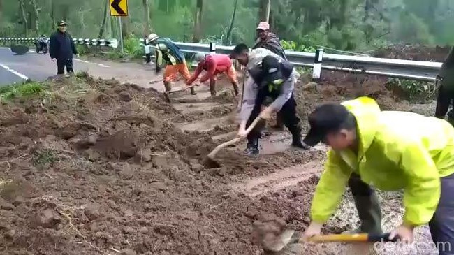 "Kendaraan sempat tidak bisa lewat karena tertutup material longsoran. Kami langsung turunkan petugas untuk melakukan penanganan. Langsung dibersihkan," terangnya.