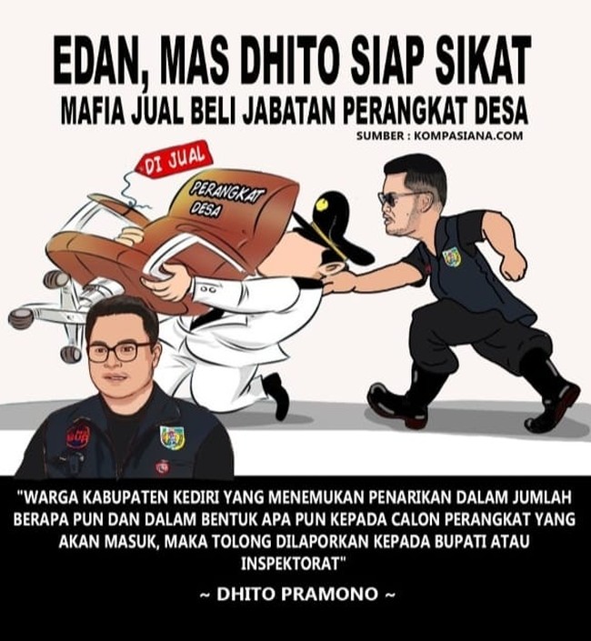"Edan, Mas Dhito siap sikat mafia jual beli Jabatan perangkat desa!," tulis akun tersebut seperti yang dilihat detikcom di Kediri, Jumat (26/11/2021).