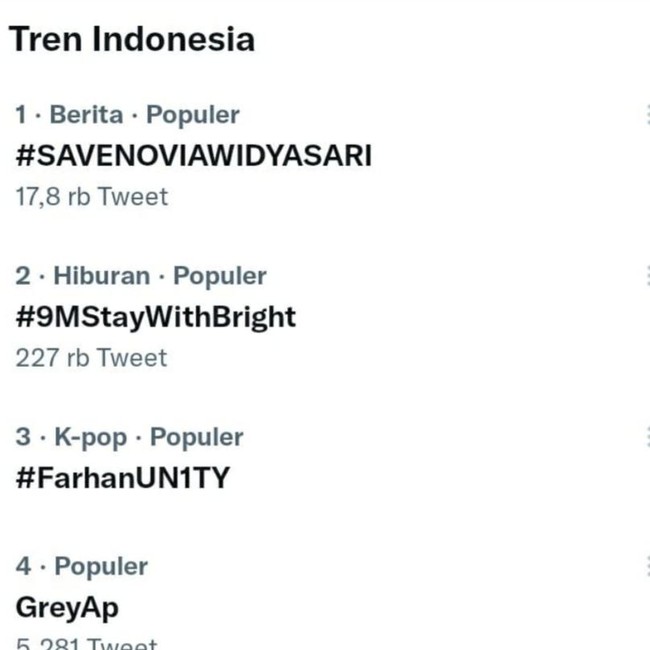 Pantauan detikcom, tagar SAVENOVIAWIDYASARI pada Sabtu (4/12) malam telah diperbincangkan hingga ratusan cuitan. Tak berhenti di situ, sejumlah tagar yang masih berkaitan dengan tewasnya Novia juga masih terus bermunculan hingga berita ini ditulis.