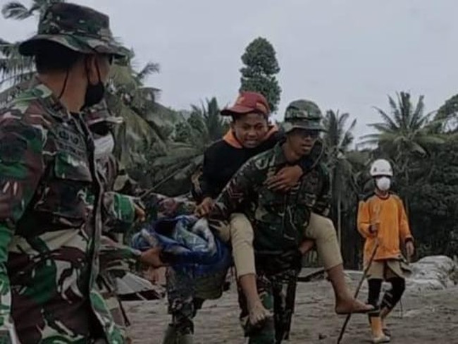"Mbah ayo mbah mbalek, onok banyu mudun banter (Mbah ayo mbah kembali, ada air deras turun," kata petugas Anggota TNI Serka Pribawono kepada warga, Senin (6/12/2021).
