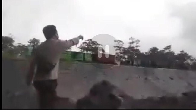 Ismail juga tampak berlari-lari menghalau para sopir truk. Ia terus berteriak kepada sopir truk agar segera pergi dari lokasi penambangan pasir.