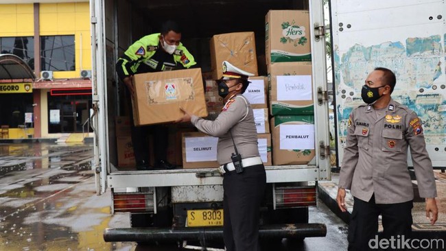 Bantuan yang diberikan adalah 360 karton masker, 400 sak paket beras @ 5 kg, 100 lembar kain selimut, 150 sandal, 25 dus air mineral, ribuan botol peralatan mandi, 1.100 pak biskuit, 200 pak pembalut wanita, 140 pak popok balita, dan 180 dus susu kotak.
