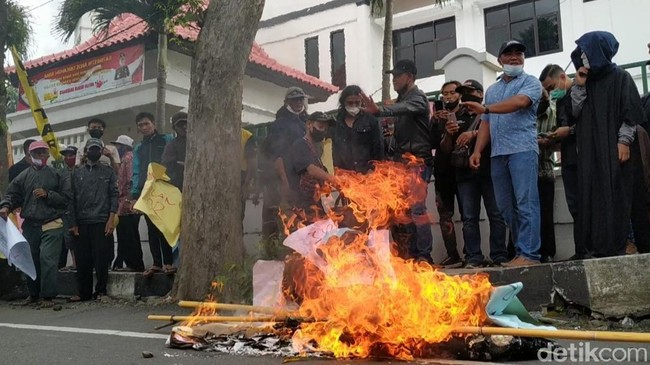 Usai mendengarkan orasi, massa kemudian membakar keranda mayat tikus dan selebaran-selebaran yang mereka bawa. Sebelumnya bergeser melajutkan aksi di simpang empat Jalan Merdeka, massa ditemui Kasi Intel Kejari Blitar, Anwar Zakaria.