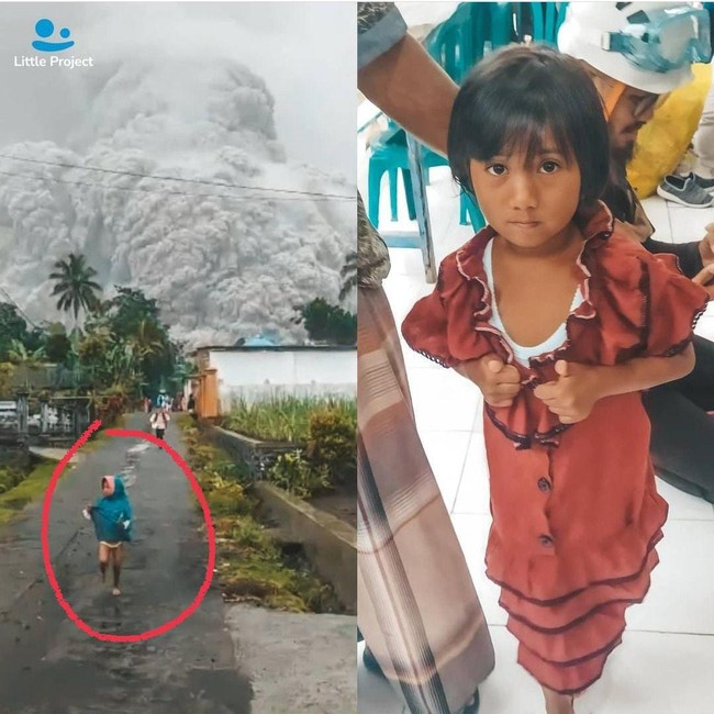 Lalu di belakang Fida, ada bocah laki-laki yang mengenakan peci dan membawa iqra. Dia juga berlari dan mencari tempat aman agar terlindung dari erupsi Semeru.