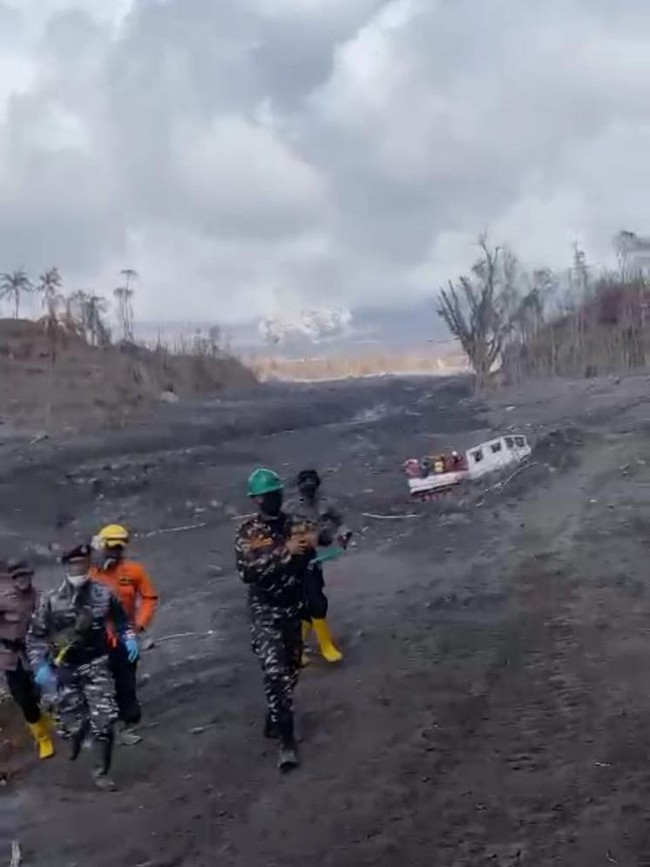 Dalam video yang diterima detikcom, terlihat sejumlah relawan mencoba turun ke lokasi aman. Para relawan berbondong-bondong menyelamatkan diri dan mengajak relawan lain turun.