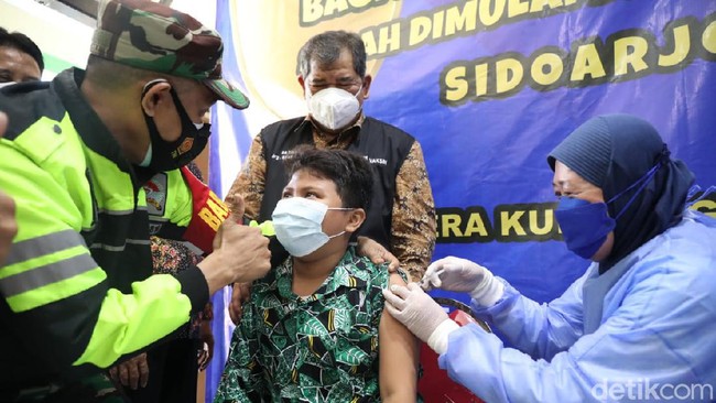 "Kita akan terus kebut vaksinasi anak. Ini penting untuk melindungi anak-anak kita. Vaksinasi adalah salah satu ikhtiar. Ini akan kita kebut dengan kolaborasi Dinas Kesehatan dan SD/MI di seluruh Sidoarjo," ujar Bupati Sidoarjo Ahmad Muhdlor Ali kepada wartawan, Kamis (16/12/2021).