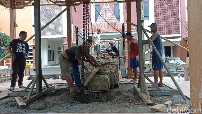 Proses pemindahan prasasti tersebut dilakukan dengan hati-hati, karena menyangkut benda cagar budaya dan bersejarah. Untuk memindahkan prasasti dari museum di Tulungagung ke truk pengangkut saja membutuhkan waktu sekitar 10 jam.