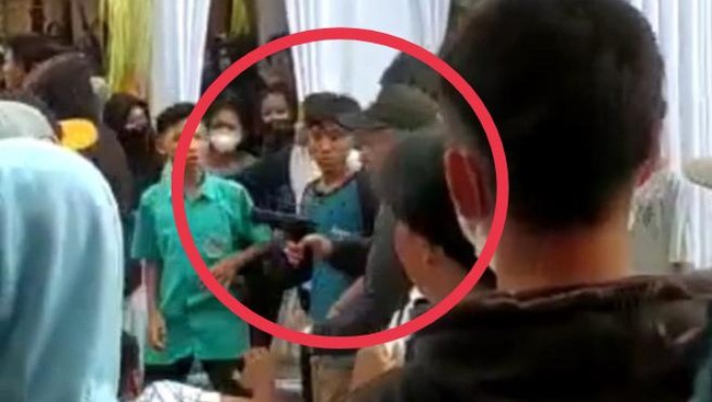 Sementara di video kedua, tampak pria bertopi itu menyelipkan pistol di pinggangnya. Sesekali, pria itu membetulkan posisi pistol di pinggangnya, sembari bermain dengan anak kecil. Dengan santai, ia menonton kesenian jaranan dekat dengan pemain jaranan tersebut.